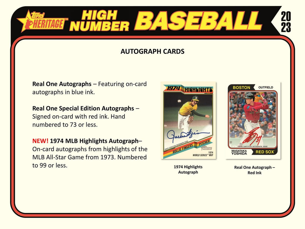 This set contains Real One Autographs, Clubhouse Collection Relics, all new inserts, and additional cards celebrating the 1974 and 2023 seasons!