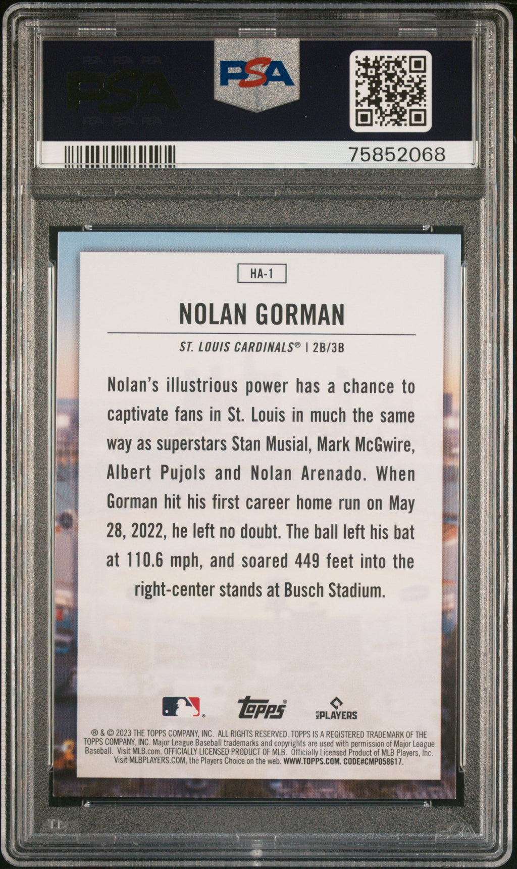 You are purchasing the following: 2023 Topps Home Field Advantage Nolan Gorman Rookie #HA1 PSA 8 . You will receive the exact item in the photographs. Note: Please do not connact us and asking the following: 1. What is the lowest you would take? Just make an offer. If the offer is automatically declined, you have your answer. 2. What the best you can do? See above. Not repling to an email is a reply. 3. Any room on this? See above. Not repling to an offer is a reply. 4. We ONLY do one counter offer, so please make your best offer the first time! Note: If the price off, in your option, please send your resaoning and an offer. We will review it. Note: We manage nearly 10 millon cards regularly and will adjust prices as errors are noticed or pointed out! Listed With Mascot.