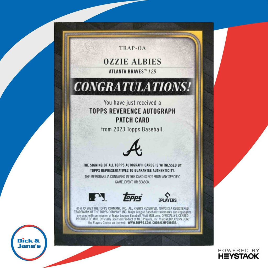 2023 Topps Ozzie Albies Reverence Auto Patch 1/10 #TRAP-OA MEM Atlanta Braves Listed With Mascot.