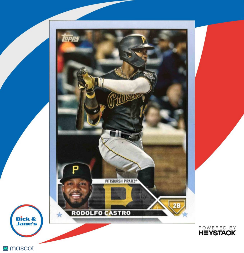 2023 Topps Rodolfo Castro Father's Day Powder Blue 37/50 #484 Pittsburgh Pirates Listed With Mascot.