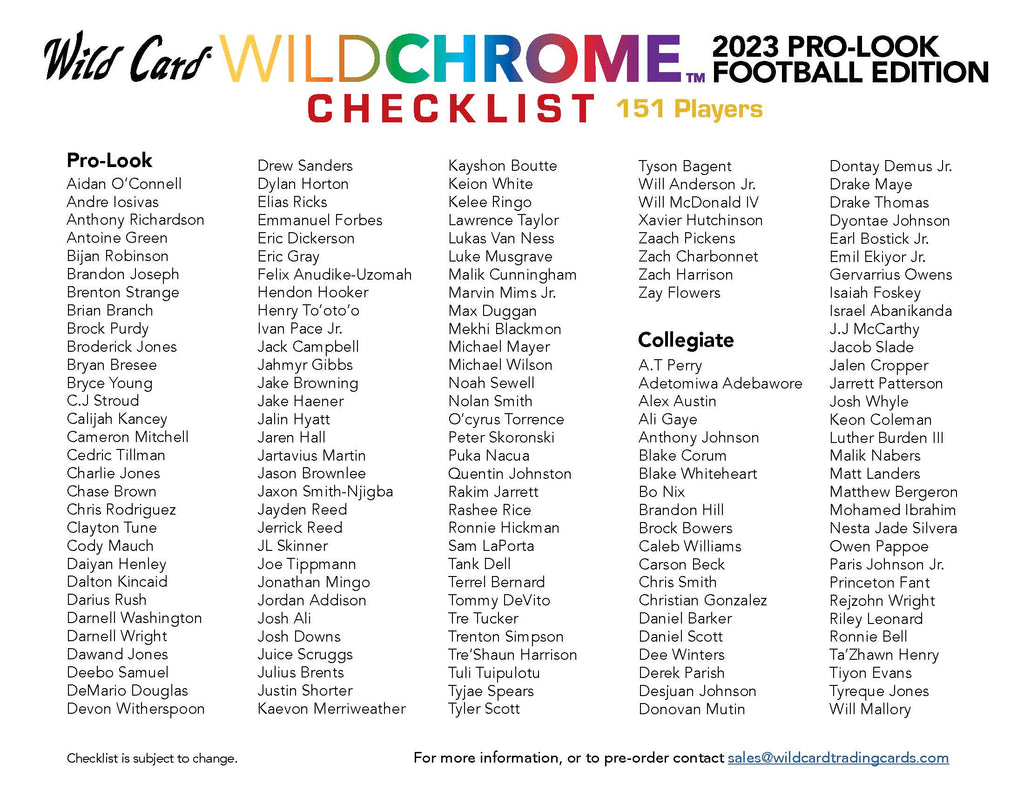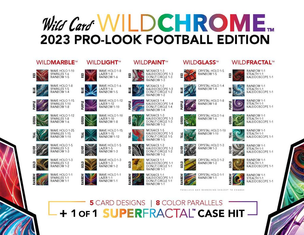 - Exclusive Promo Packs for 2023 Wild Card Wildchrome Pro-Look Football Edition!- Autographs fall 1 in 20 packs on average! (20 packs does not guarantee an auto)
