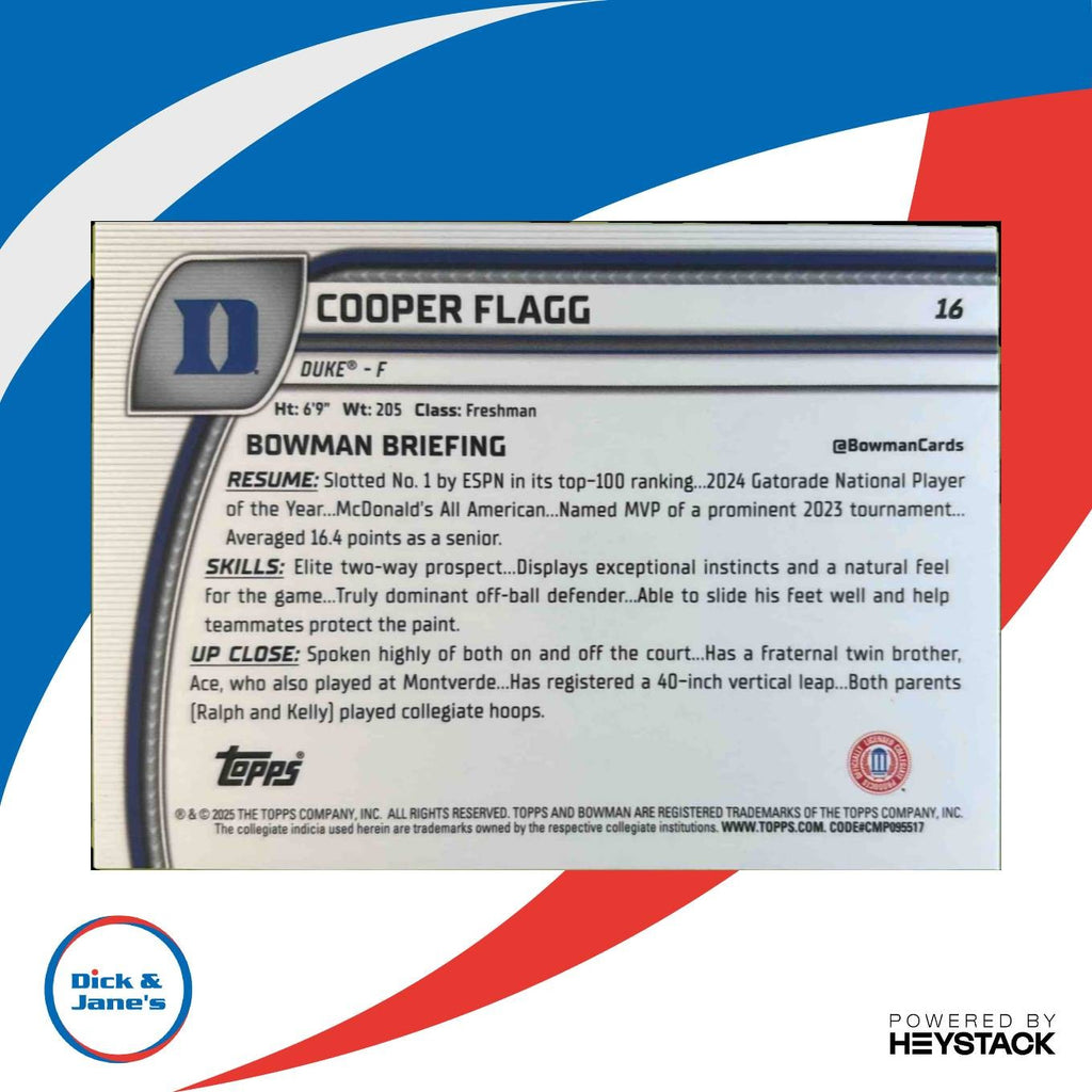 2024-25 Bowman University Chrome Cooper Flagg Black Wave Refractor #16 Devils Listed With Mascot.