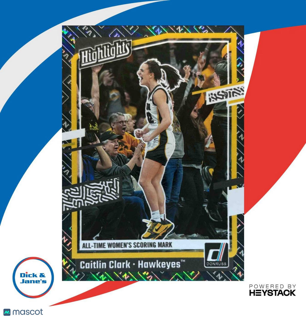 Get your hands on the highly sought after 2024-25 Panini Caitlin Clark Collection Highlights #H10 RC Iowa Hawkeyes sports trading card. This NCAAB card features rookie sensation Caitlin Clark in action for the Iowa Hawkeyes. A must-have for any basketball card collector, don't miss out on adding this rare and collectible item to your collection today! Listed With Mascot.