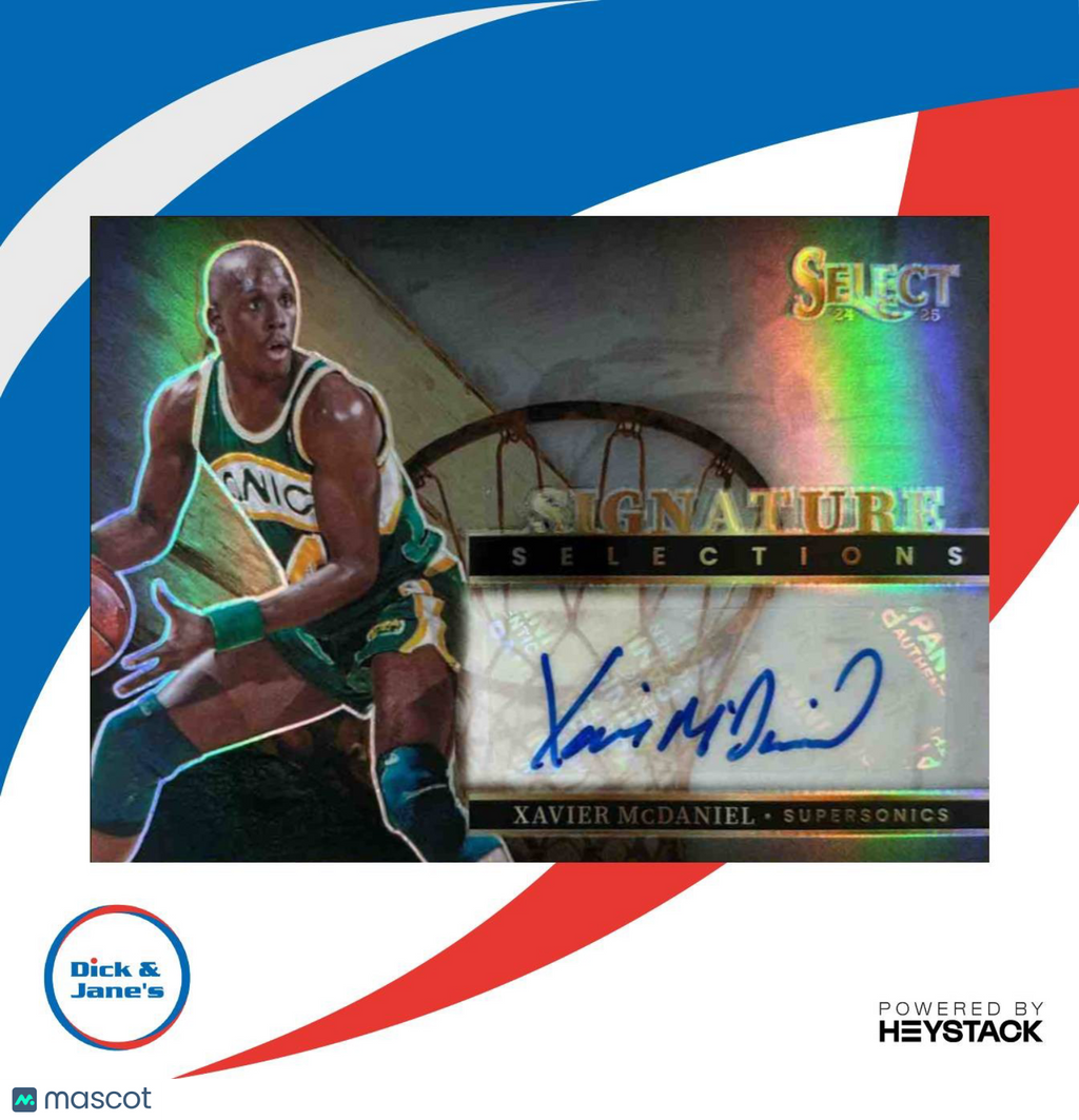 2024-25 Panini Select Xavier McDaniel Signature Selections #SS- Auto Supersonics Listed With Mascot.