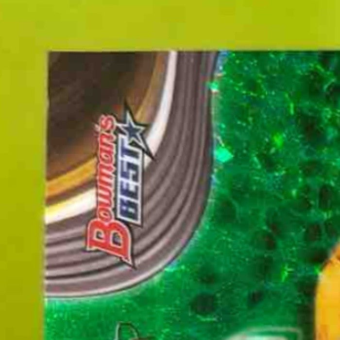 Collect this rare 2024 Bowman Best Ethan Salas Prospects Green Mini Diamonds card featuring the San Diego Padres player. Limited edition with only 99 produced, this MLB trading card is a must-have for any sports memorabilia collector. Don't miss out on adding this gem to your collection! Listed With Mascot.