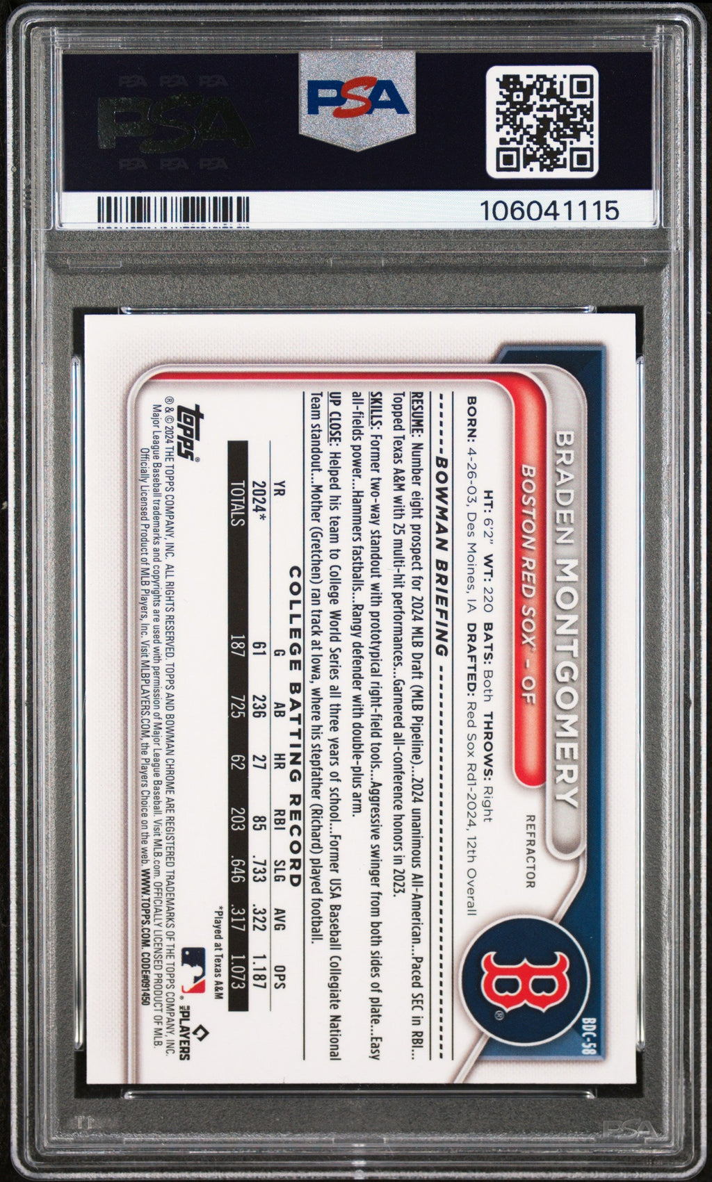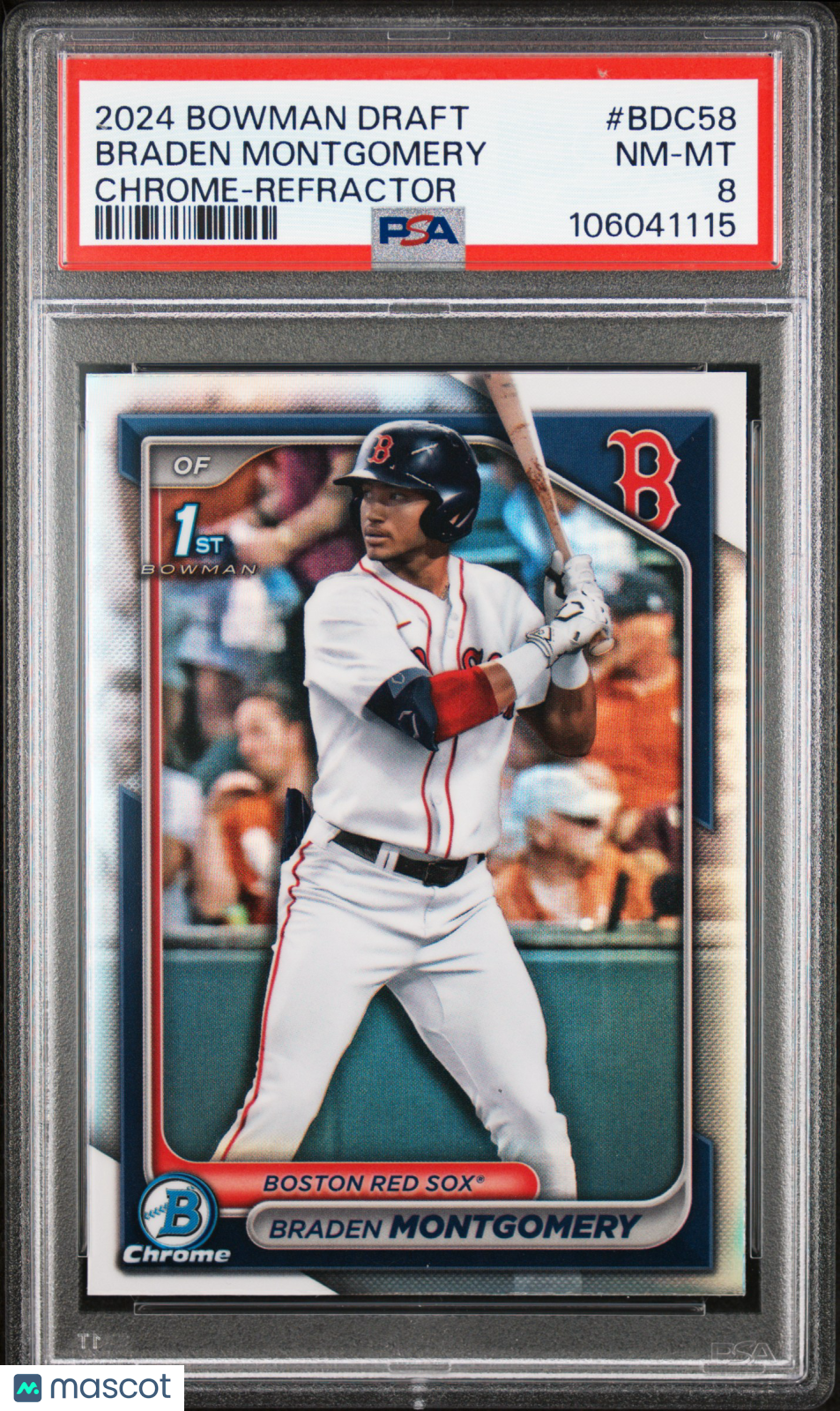 You are purchasing the following: 2024 Bowman Draft Braden Montgomery Chrome Refractor #BDC58 PSA 8 Boston Red Sox. You will receive the exact item in the photographs. Note: Please do not connact us and asking the following: 1. What is the lowest you would take? Just make an offer. If the offer is automatically declined, you have your answer. 2. What the best you can do? See above. Not repling to an email is a reply. 3. Any room on this? See above. Not repling to an offer is a reply. 4. We ONLY do one counter offer, so please make your best offer the first time! Note: If the price off, in your option, please send your resaoning and an offer. We will review it. Note: We manage nearly 10 millon cards regularly and will adjust prices as errors are noticed or pointed out! Listed With Mascot.