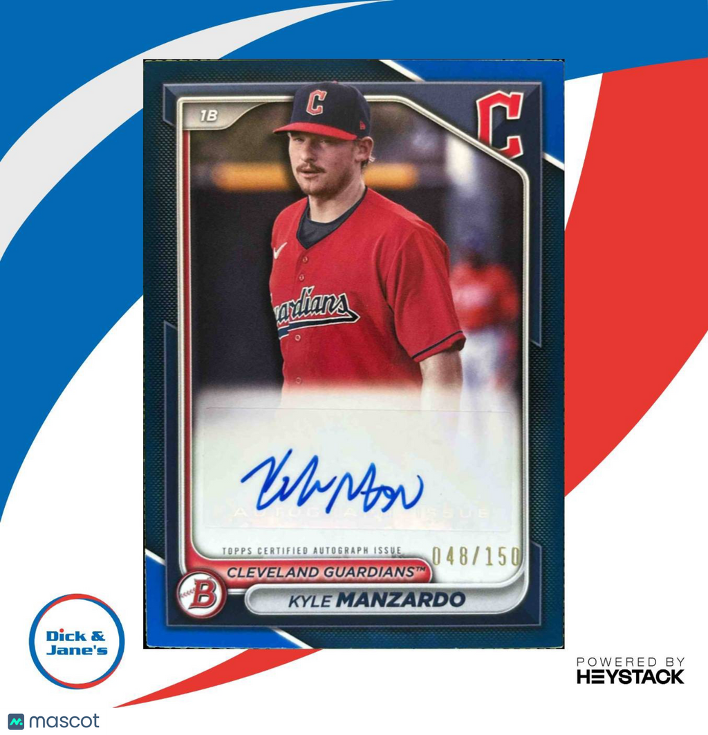 2024 Bowman Kyle Manzardo Prospect Auto Blue 48/150 #PPRA-KM Cleveland Guardians Listed With Mascot.