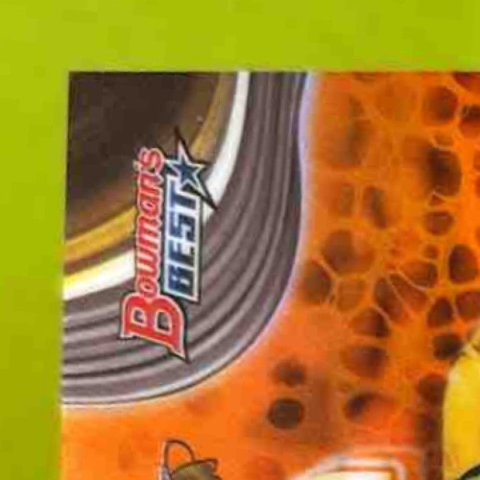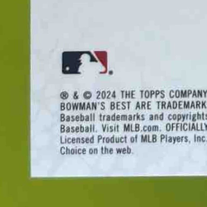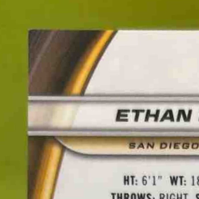 The 2024 Bowman's Best Ethan Salas Prospects Orange Refractor trading card features a limited edition /25 print run, showcasing the rising star from the San Diego Padres. This MLB card is a must-have for any collector, with its vibrant orange design and rare numbered edition. Don't miss out on adding this unique piece to your collection! Listed With Mascot.