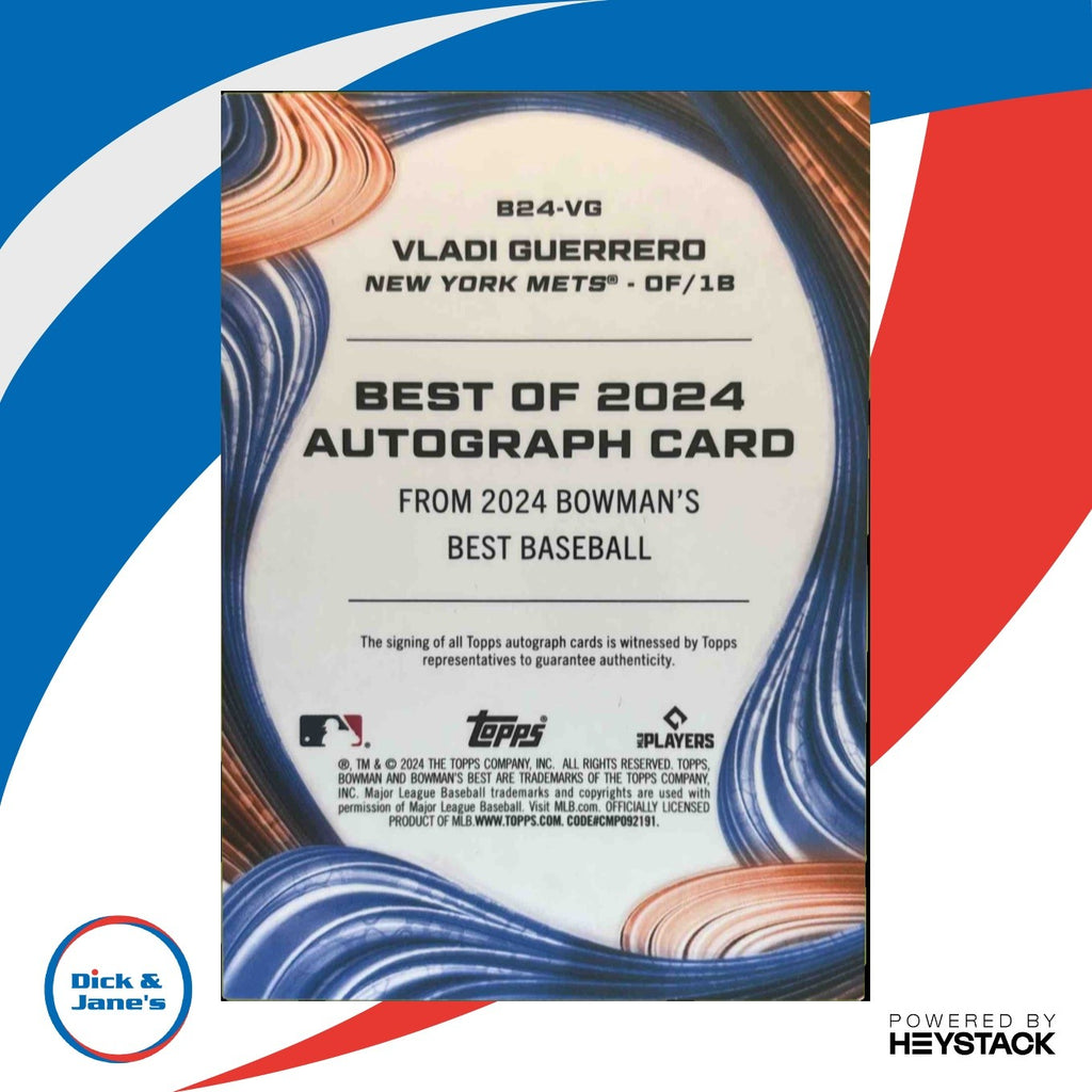 Powered by Frooition Home About Us Contact Other Baseball Baseball Rookies Baseball Inserts Baseball Game Used/Relics Baseball Autographed Football Football Rookies Football Inserts Football Game Used/Relics Football Autographed Basketball Basketball Rookies Basketball Inserts Basketball Game Used/Relics Basketball Autographed Hockey NASCAR Hard Cover Books Music CDs Baseball Boxes Baseball Pack Lots Football Boxes Football Pack Lots Other Boxes Othe Pack Lots Magic Singles 2024 Bowman's Best Vladi Guerrero Best of Auto Blue Refractor 10/150 NY Mets 2024 Bowman's Best Vladi Guerrero Best of Auto Blue Refractor 10/150 NY Mets Item Description This exclusive 2024 Bowman's Best Vladi Guerrero Best of Auto Blue Refractor card is a must-have for any MLB fan or collector. Limited edition 10/150, featuring Guerrero in his NY Mets uniform with a rare blue refractor autograph. Don't miss out on this highly coveted sports trading card! About Us About Us PSA Grading Consignments Buying Cards EBay Live About Us Yes, there was a Dick & Jane! Originally founded in 1989, Dick & Jane's is Jacksonville's oldest hobby and collectibles store. Our focus is on the collector. We started small with comics, coins and cards and evolved based upon our customers needs and desired and now have 14 employees and over 5 million sportscards and nearly 700,000 different items on our dedicated singles sportscard website We have thousands of raw TCG cards in store. Magic the Gathering and Pokemon! We have Jacksonville s largest selection of graded sports and non-sports cards, all accessible on our website! We engage with our customers! Let us know what you would like to see in the store or changes you would suggest that we make. We would like to start hosting MONTHLY TRADE NIGHTS! We always are buying and trading! WE ARE THE LOCAL HOBBY STORE!!! Stop by if you are in the Jacksonville Area! We are right off I-95 near downtown. PSA Grading PSA Grading We