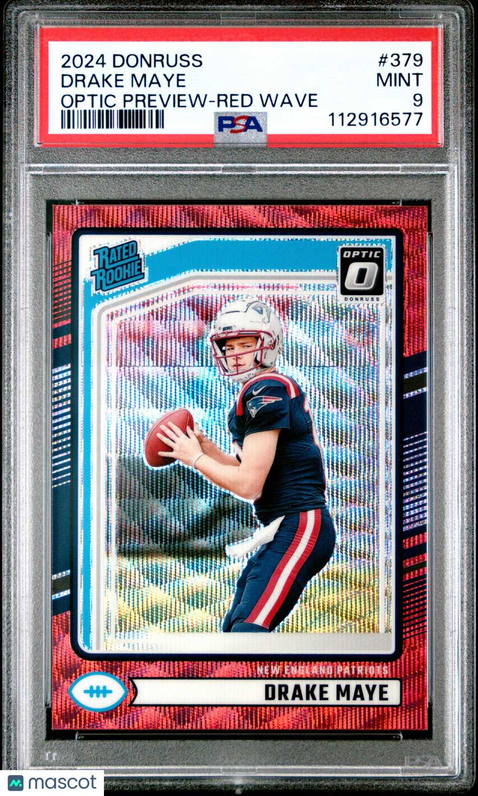 You are purchasing the following: 2024 Panini Donruss Drake Maye Optic Preview Red Wave Rookie #379 PSA 9 New England Patriots. You will receive the exact item in the photographs. Note: Please do not connact us and asking the following: 1. What is the lowest you would take? Just make an offer. If the offer is automatically declined, you have your answer. 2. What the best you can do? See above. Not repling to an email is a reply. 3. Any room on this? See above. Not repling to an offer is a reply. 4. We ONLY do one counter offer, so please make your best offer the first time! Note: If the price off, in your option, please send your resaoning and an offer. We will review it. Note: We manage nearly 10 millon cards regularly and will adjust prices as errors are noticed or pointed out! Listed With Mascot.