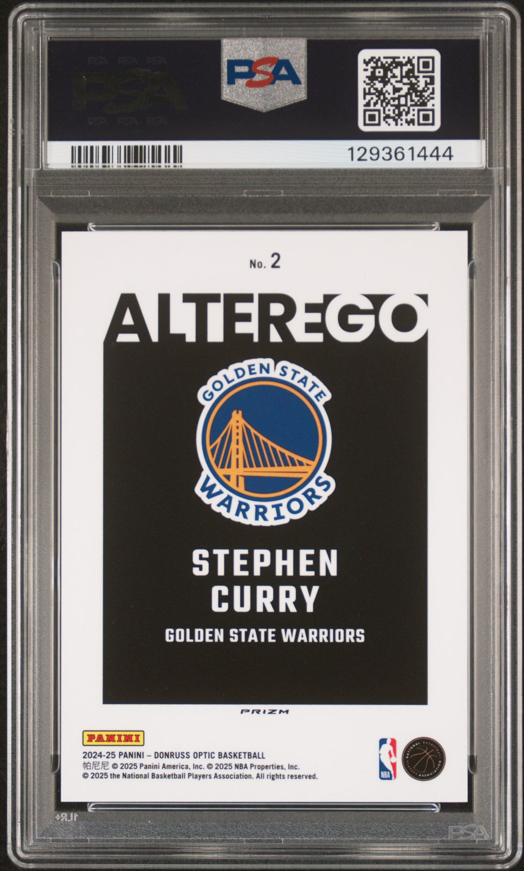 2024/25 Donruss Optic Alter Ego Stephen Curry PSA 10 GEM MINT Golden State Warriors Don’t miss your chance to own this stunning 2024 Panini Donruss Optic Alter Ego Stephen Curry card, professionally graded PSA 10 GEM MINT! With only 6 cards in existence and none graded higher, this rare collectible is a must-have for serious Golden State Warriors and Curry fans. Secure a piece of NBA history and add a true centerpiece to your collection before it’s gone! Perfect for any basketball card enthusiast, this card boasts impeccable condition and top-tier authentication from Professional Sports Authenticator (PSA). With its low population and flawless grade, this is a high-demand investment that won’t last long. Act now to elevate your collection with this iconic Curry card! Graded: Yes Population Higher: 0 Sport: Basketball Set: 2024 Panini Donruss Optic Alter Ego Certification Number: 129361444 Grader: Professional Sports Authenticator (PSA) Manufacturer: Panini Population: 6 Grade: 10 Year Manufactured: 2024 Player/Athlete: Stephen Curry Team: Golden State Warriors Card Number: 2 Listed With Mascot.