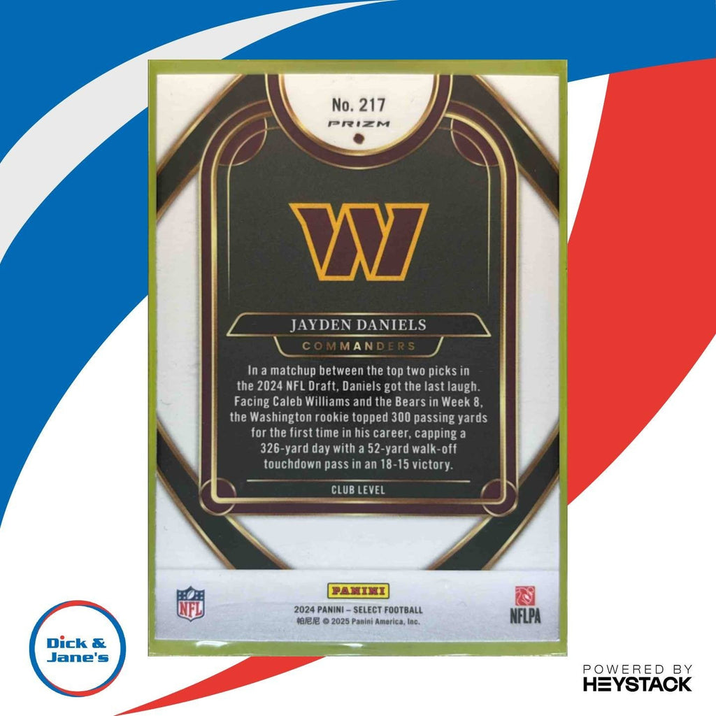 2024 i Select Jayden Daniels Club Red and Yellow Shock #217 RC Commanders Listed With Mascot.