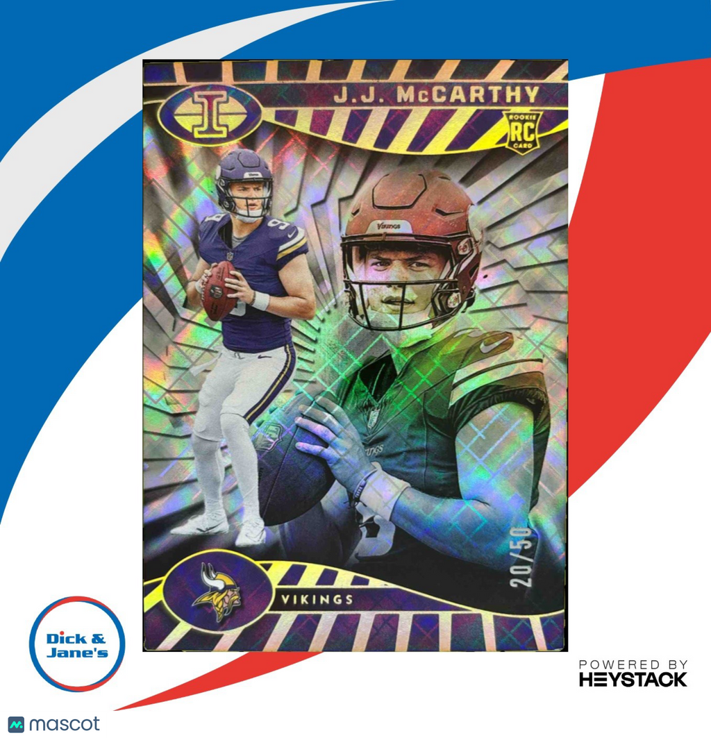 Powered by Frooition Home About Us Contact Other Baseball Baseball Rookies Baseball Inserts Baseball Game Used/Relics Baseball Autographed Football Football Rookies Football Inserts Football Game Used/Relics Football Autographed Basketball Basketball Rookies Basketball Inserts Basketball Game Used/Relics Basketball Autographed Hockey NASCAR Hard Cover Books Music CDs Baseball Boxes Baseball Pack Lots Football Boxes Football Pack Lots Other Boxes Othe Pack Lots Magic Singles 2024 Illusions J.J. McCarthy Diamond Trophy Collection 20/50 #100 Vikings Rookie 2024 Illusions J.J. McCarthy Diamond Trophy Collection 20/50 #100 Vikings Rookie Item Description Introducing the 2024 Illusions J.J. McCarthy Diamond Trophy Collection card featuring the Vikings Rookie quarterback. This limited edition card is numbered 20 out of 50, making it a rare find for any collector. Don't miss your chance to own a piece of NFL history with this Rookie Card. About Us About Us PSA Grading Consignments Buying Cards EBay Live About Us Yes, there was a Dick & Jane! Originally founded in 1989, Dick & Jane's is Jacksonville's oldest hobby and collectibles store. Our focus is on the collector. We started small with comics, coins and cards and evolved based upon our customers needs and desired and now have 14 employees and over 5 million sportscards and nearly 700,000 different items on our dedicated singles sportscard website We have thousands of raw TCG cards in store. Magic the Gathering and Pokemon! We have Jacksonville s largest selection of graded sports and non-sports cards, all accessible on our website! We engage with our customers! Let us know what you would like to see in the store or changes you would suggest that we make. We would like to start hosting MONTHLY TRADE NIGHTS! We always are buying and trading! WE ARE THE LOCAL HOBBY STORE!!! Stop by if you are in the Jacksonville Area! We are right off I-95 near downtown. PSA Grading PSA Grading We