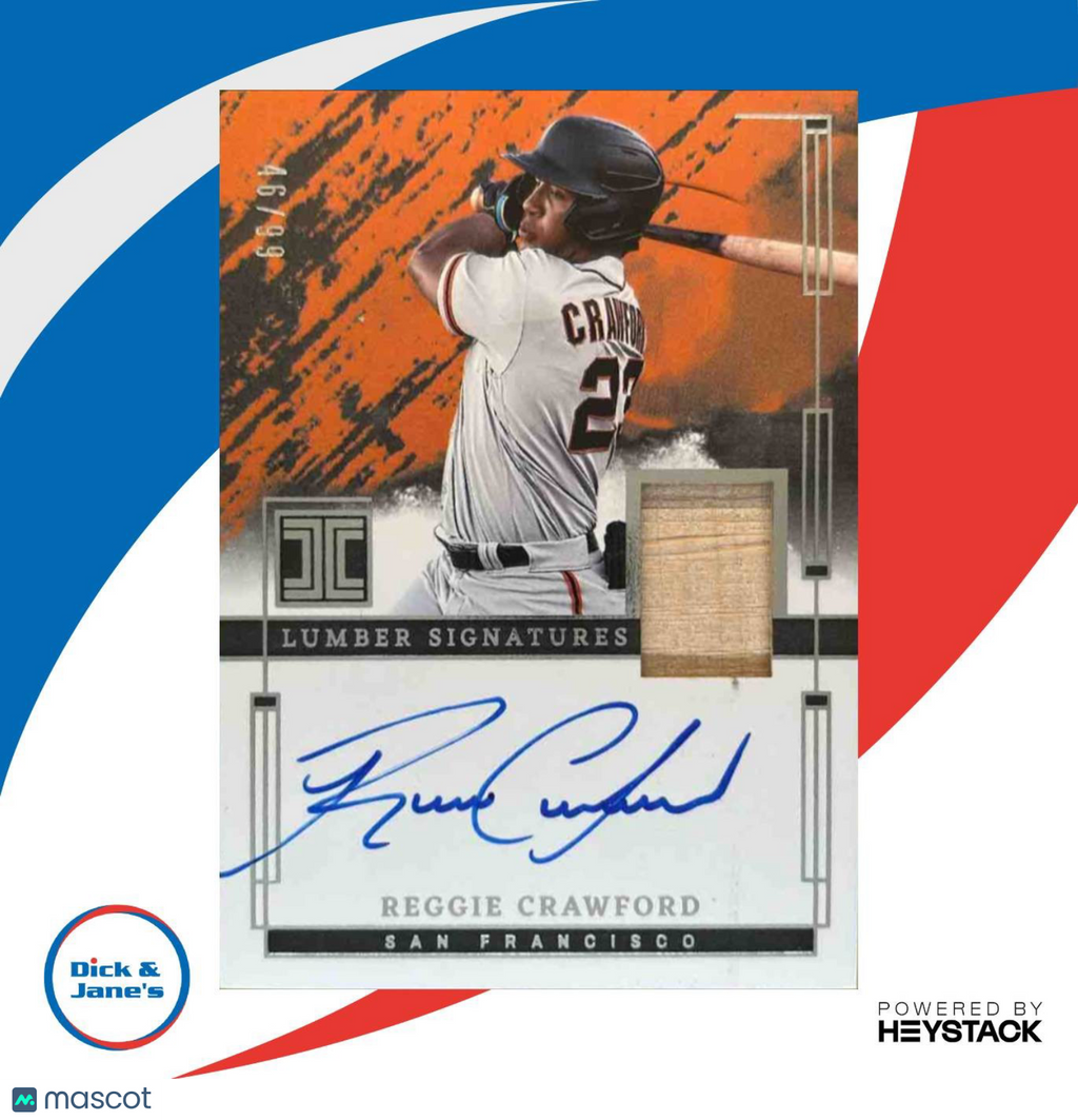 2024 Impeccable Reggie Crawford Elegance Prospect Jersey Auto 46/99 Giants Listed With Mascot.