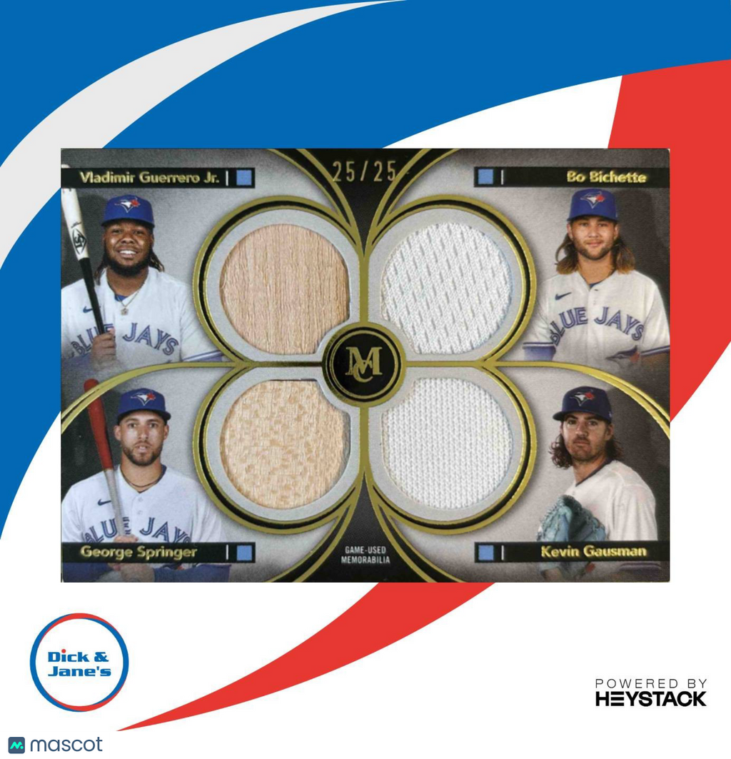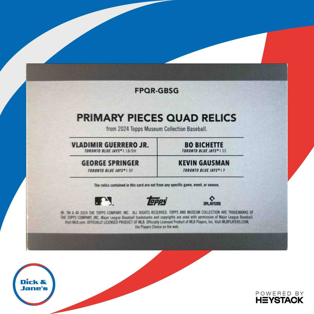 2024 Museum Collection Vladimir Guerrero Jr Bo Bichette Quad Relics Gold 25/25 Listed With Mascot.