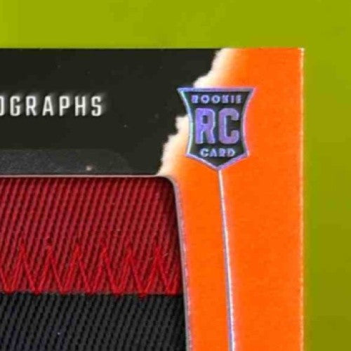 Own a piece of NFL history with this rare 2024 Origins Cade Stover Rookie Jumbo Jersey Auto Orange Patch trading card. Limited to just 75 in existence, this card features a signature of the rookie Texan player, making it a highly sought-after collectible for football fans. Don't miss out on adding this unique item to your collection! Listed With Mascot.