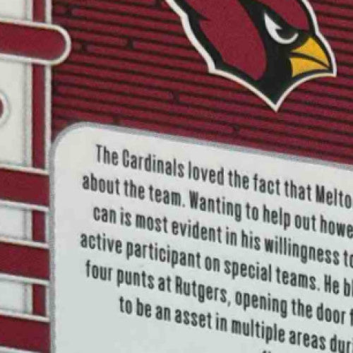 This 2024 Panini Absolute Max Melton Rookies Blue Diamonds card is a limited edition RC of the Cardinals player. Numbered 28/199, this NFL trading card is a must-have for collectors and fans alike. Don't miss out on adding this special rookie card to your collection! Listed With Mascot.