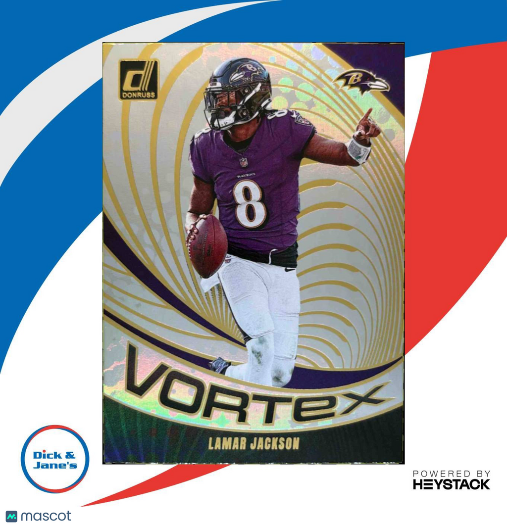 2024 Panini Donruss Lamar Jackson Vortex #VOR-LJA Baltimore Ravens Listed With Mascot.