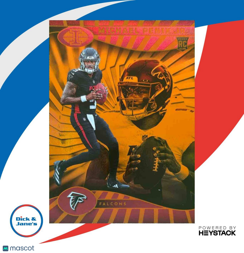 Collector's dream! 2024 Panini Illusions Michael Penix Jr. Orange Trophy Collection #4 RC Falcons trading card. Rare rookie card featuring standout NFL quarterback. Perfect addition to any sports memorabilia collection. Don't miss out on this limited edition card! Listed With Mascot.