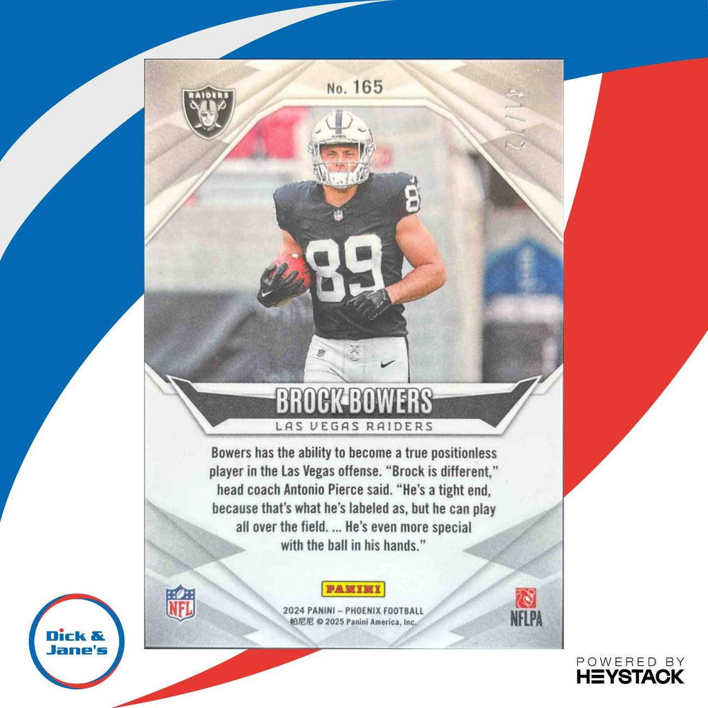 2024 Panini Phoenix Brock Bowers Teal Fade 41/72 #165 RC Las Vegas Raiders Don’t miss your chance to own this 2024 Panini Phoenix Brock Bowers Base Teal Fade #165 rookie card, featuring the standout Las Vegas Raiders star! This eye-catching card, manufactured by Panini, is part of the sought-after Phoenix set and showcases the rare Teal Fade parallel/variety, making it a must-have addition for serious NFL and football collectors. The card is in excellent condition and is a perfect collectible for fans of Brock Bowers and the Las Vegas Raiders. Add this unique card to your collection today before it’s gone—these popular rookie cards are moving fast! League: NFL Autographed: No Sport: Football Set: Phoenix Parallel/Variety: Base Teal Fade Card Condition: Excellent Manufacturer: Panini Player/Athlete: Brock Bowers Team: Las Vegas Raiders Card Number: 165 Listed With Mascot.