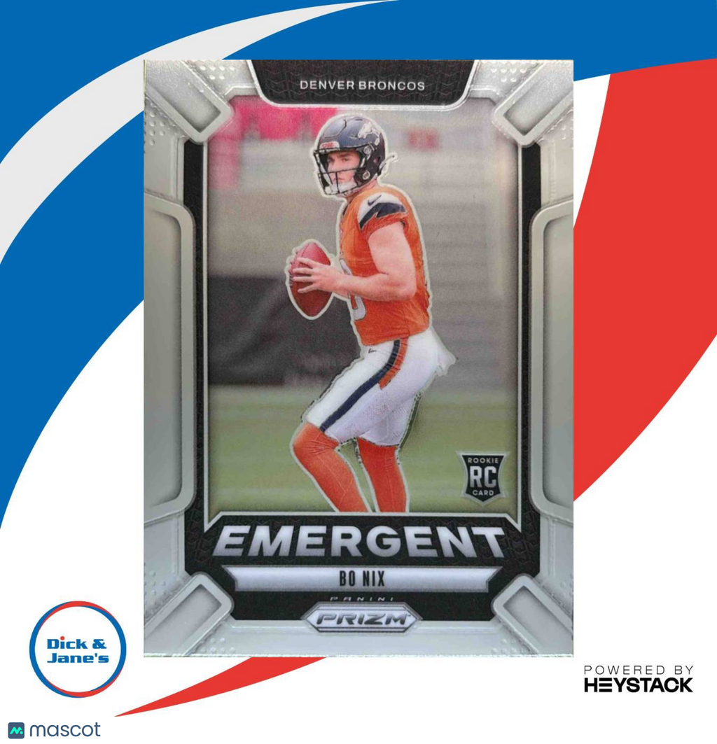 2024 Panini Prizm Bo Nix Emergent #3 RC Denver Broncos Listed With Mascot.