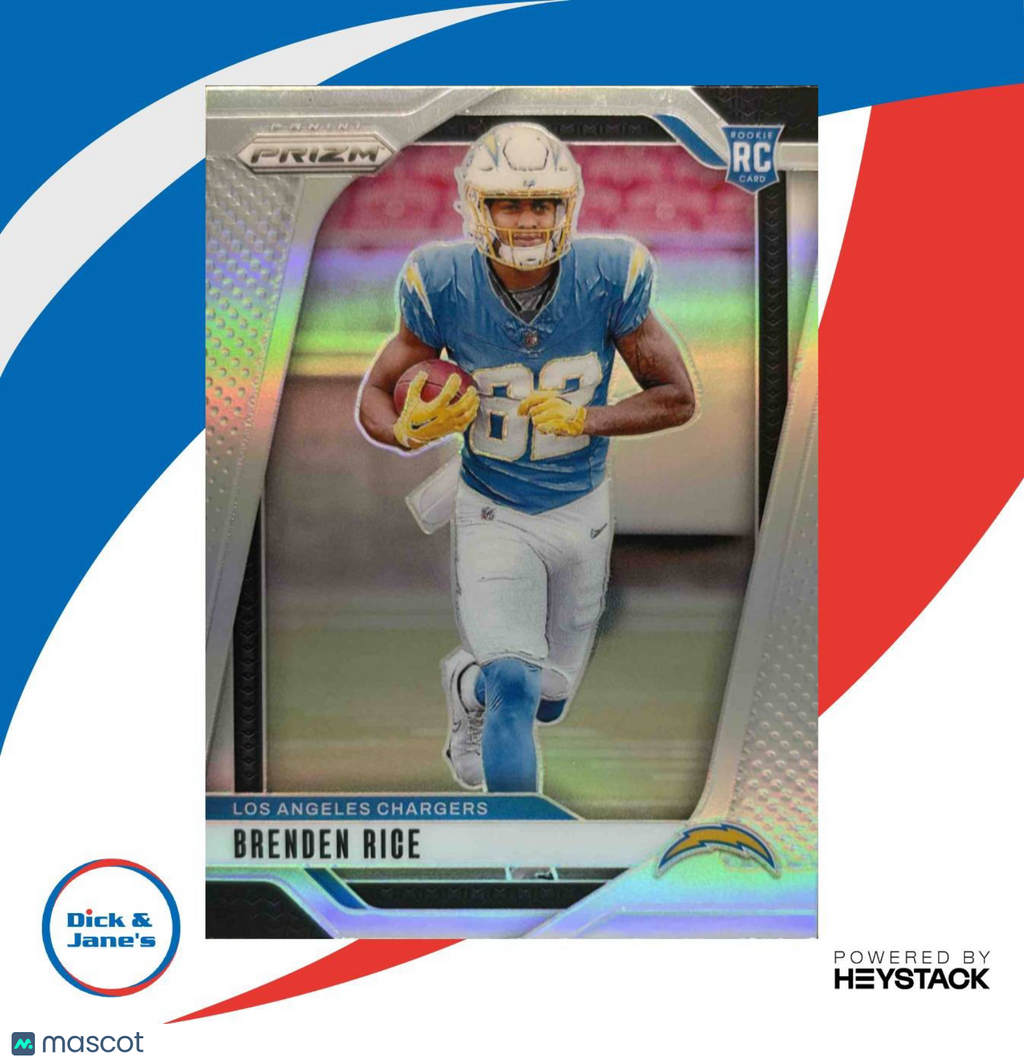 2024 Panini Prizm Brenden Rice HOLO Silver #313 RC Los Angeles Chargers Listed With Mascot.