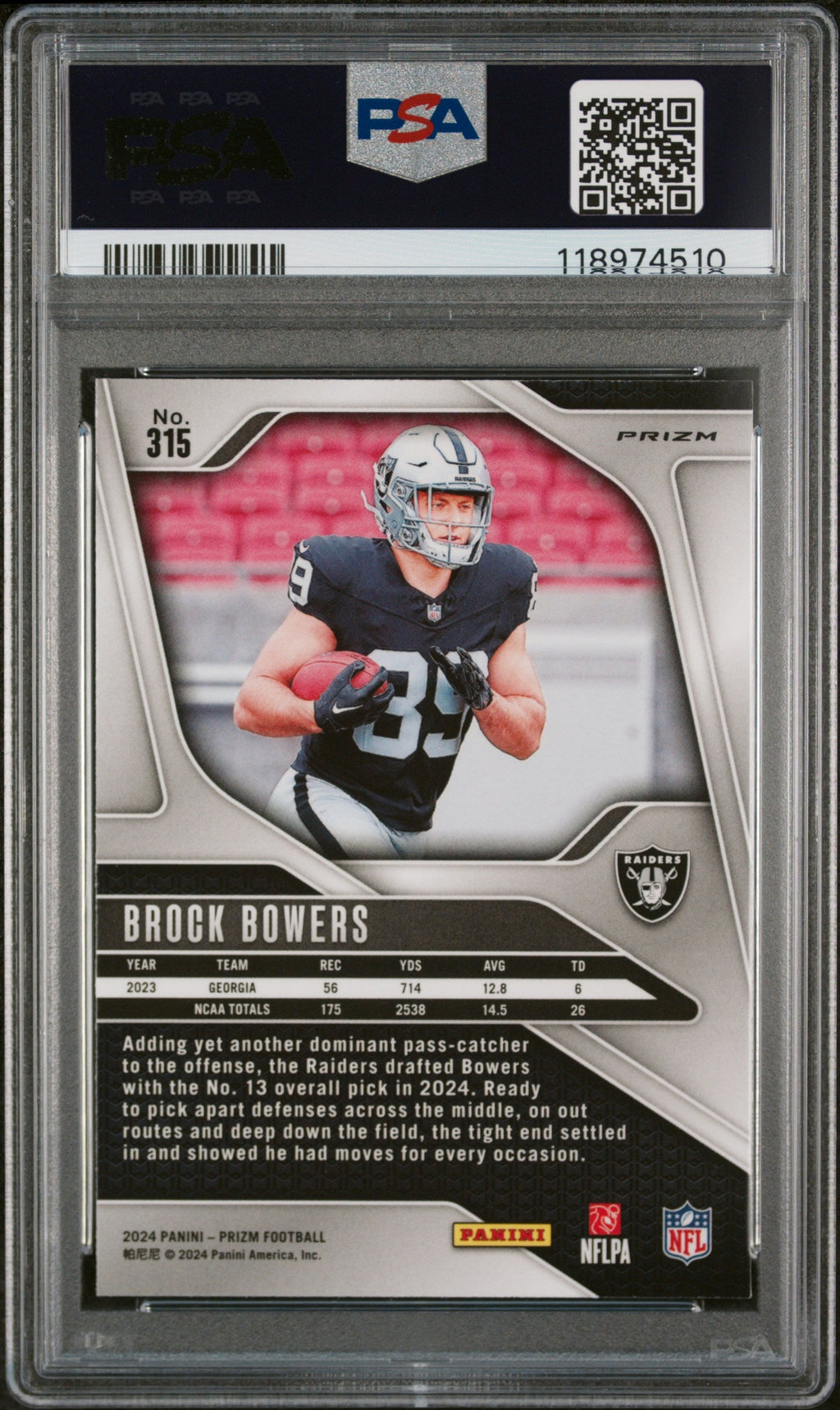 You are purchasing the following: 2024 Panini Prizm Brock Bowers Silver #315 PSA 9 . You will receive the exact item in the photographs. Note: Please do not connact us and asking the following: 1. What is the lowest you would take? Just make an offer. If the offer is automatically declined, you have your answer. 2. What the best you can do? See above. Not repling to an email is a reply. 3. Any room on this? See above. Not repling to an offer is a reply. 4. We ONLY do one counter offer, so please make your best offer the first time! Note: If the price off, in your option, please send your resaoning and an offer. We will review it. Note: We manage nearly 10 millon cards regularly and will adjust prices as errors are noticed or pointed out! Listed With Mascot.