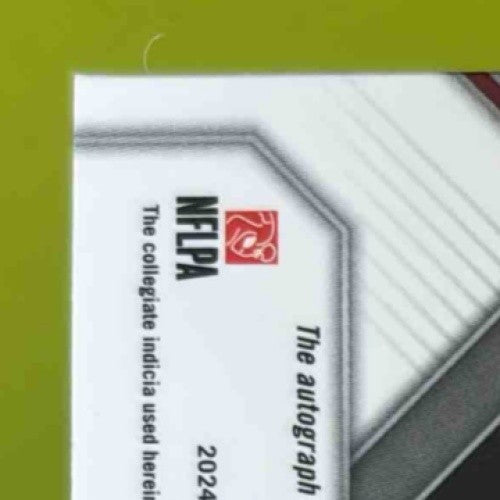 Rare 2024 Panini Prizm Collegiate Draft Aaron Casey Sensational Signatures Red Ice sports trading card. Features RC Auto of highly sought after player Aaron Casey. A must-have for any serious collector or fan. Don't miss your chance to own this valuable piece of sports memorabilia. Listed With Mascot.