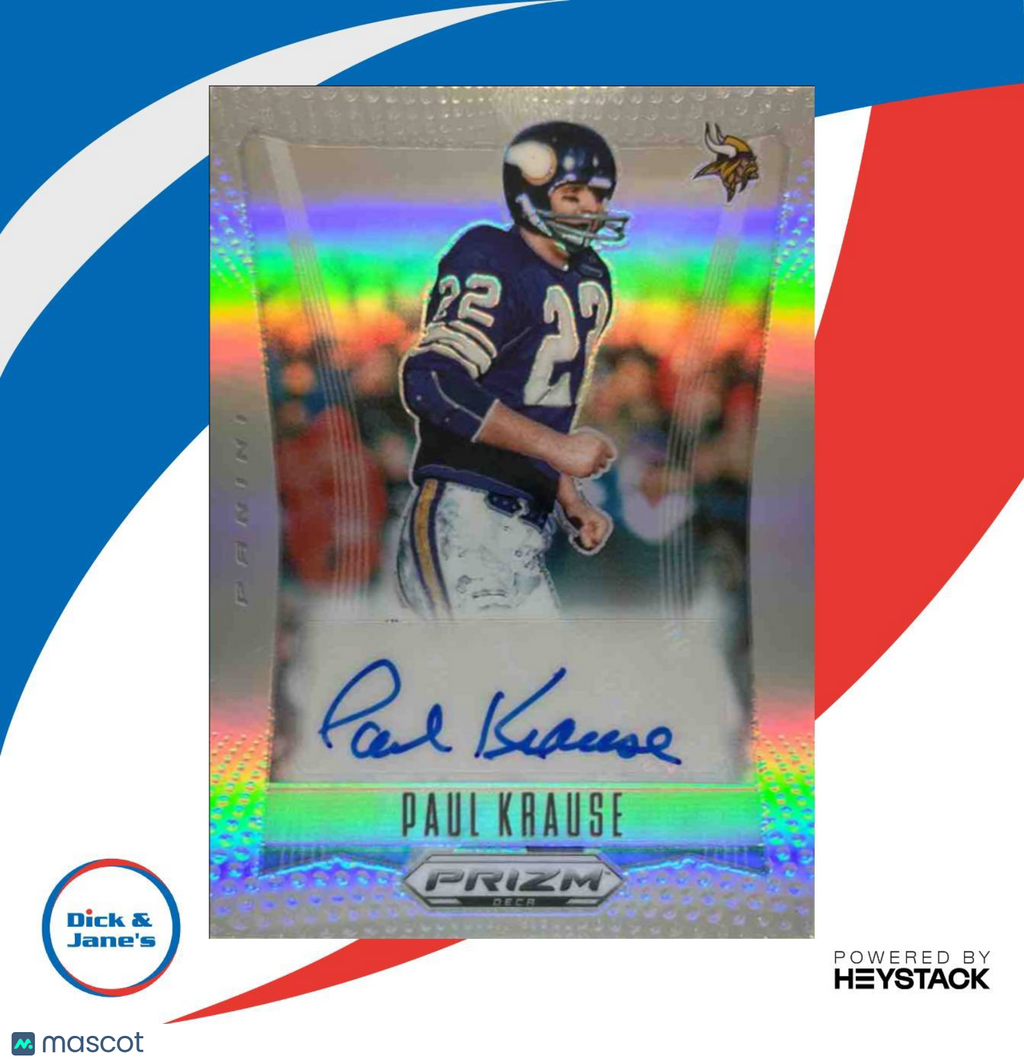 2024 Panini Prizm Deca Paul Krause Signatures Silver Auto Minnesota Vikings Listed With Mascot.