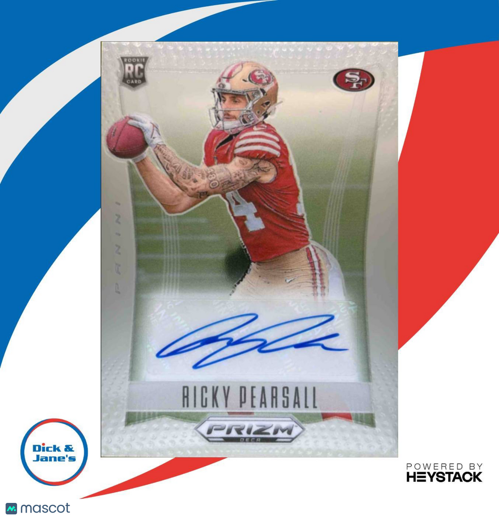 2024 Panini Prizm Deca Ricky Pearsall Signatures RC Auto San Francisco 49ers Listed With Mascot.