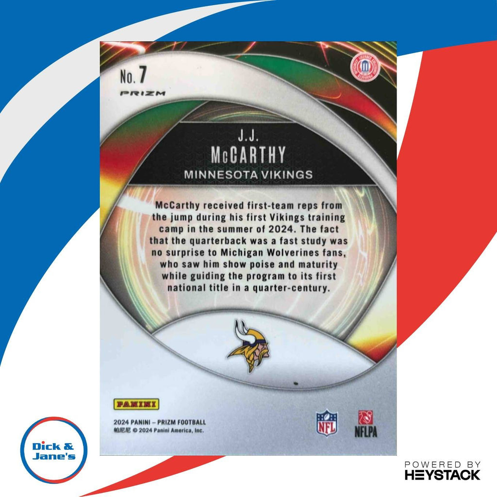 2024 Panini Prizm J.J. McCarthy Portals Green #7 RC Listed With Mascot.