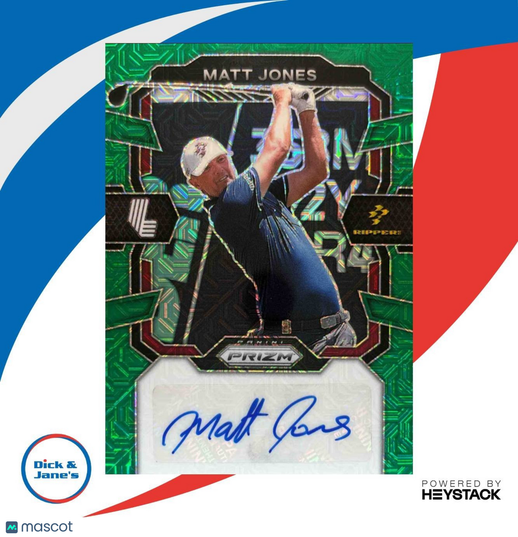 : For serious collectors, the 2024 Panini Prizm LIV Matt Jones Signatures Green Mojo 29/54 Auto Ripper GC card is a must-have. This limited edition sports trading card features the signature of Matt Jones and a vibrant green design that is sure to stand out in any collection. With only 54 cards in existence, this rare find is a great addition to any sports card collection. Listed With Mascot.