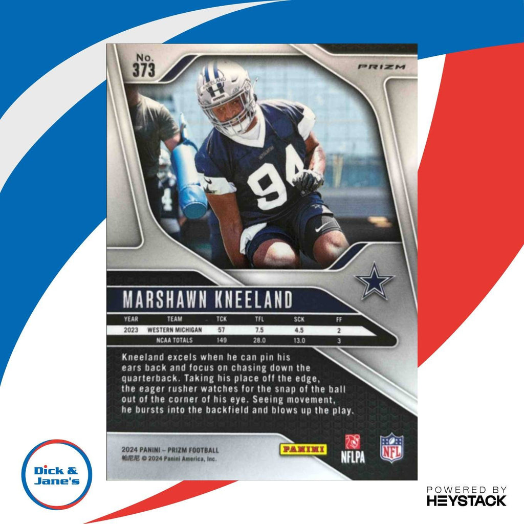 2024 Panini Prizm Marshawn Kneeland Black and Red Checker #373 RC Dallas Cowboys Listed With Mascot.