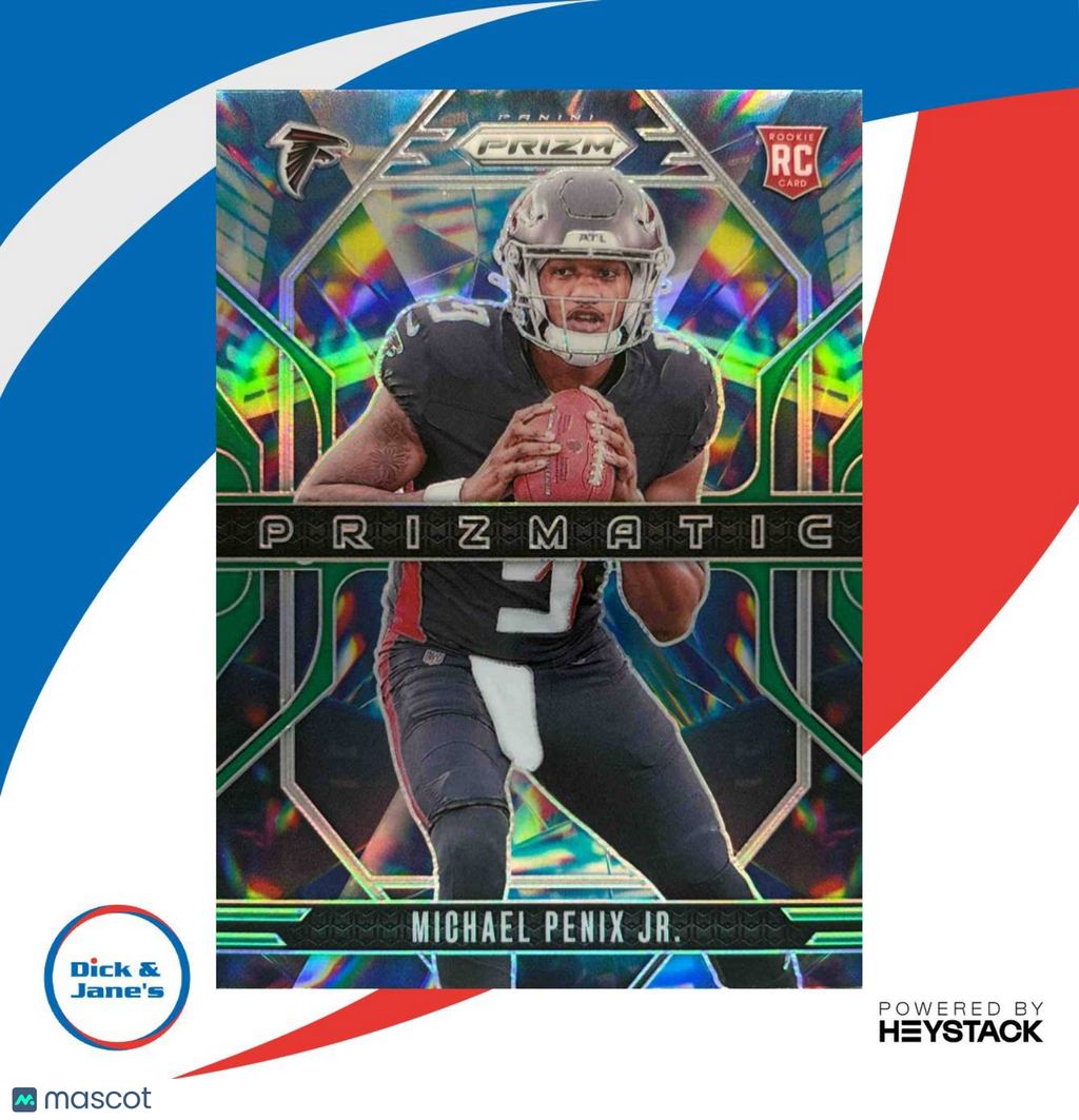 2024 Panini Prizm Michael Penix Jr. Prizmatic Green #10 RC Atlanta Falcons Listed With Mascot.