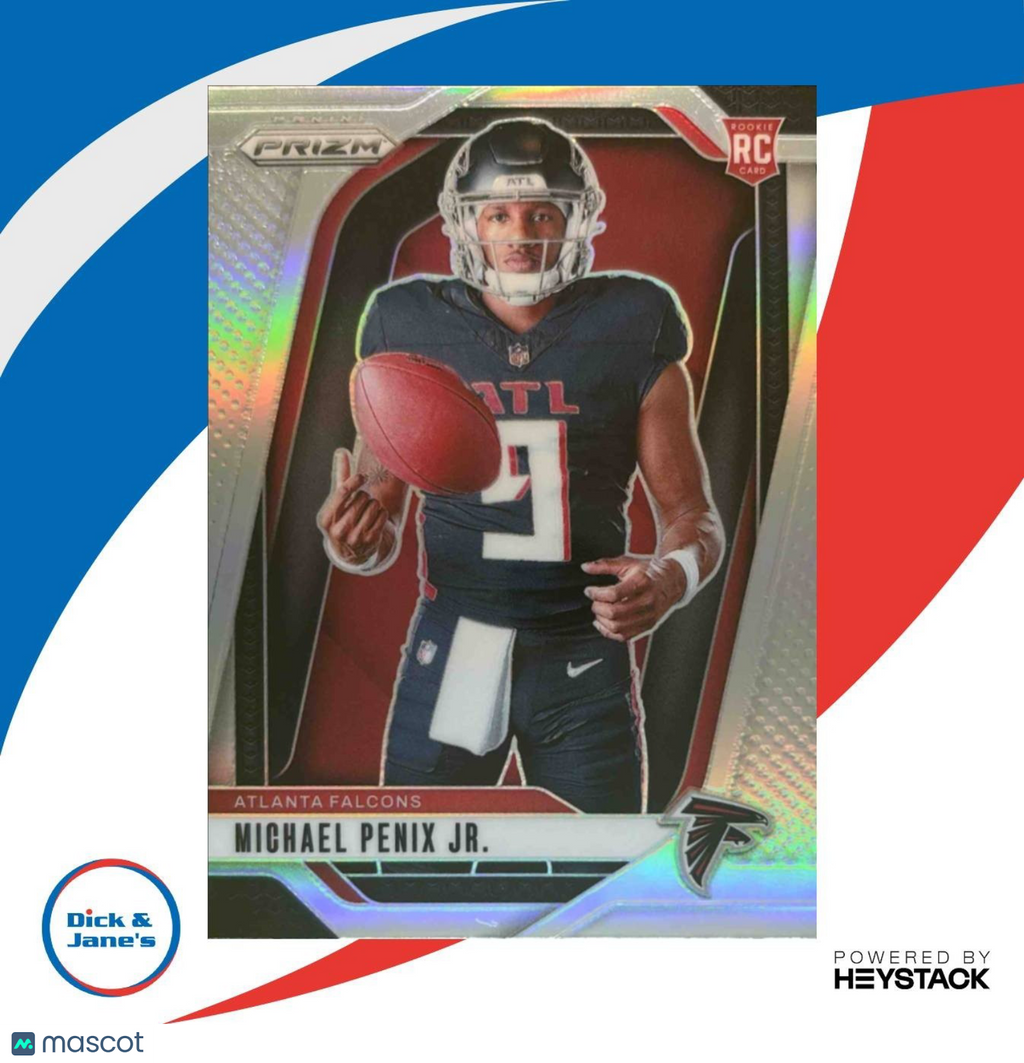 This 2024 Panini Prizm Michael Penix Jr. Rookie Variation #31 trading card is a must-have for any Atlanta Falcons fan or NFL collector. Featuring Penix Jr. in his rookie season, this card is a rare variation that is sure to be a valuable addition to any collection. Don't miss out on the opportunity to own a piece of sports history! Listed With Mascot.