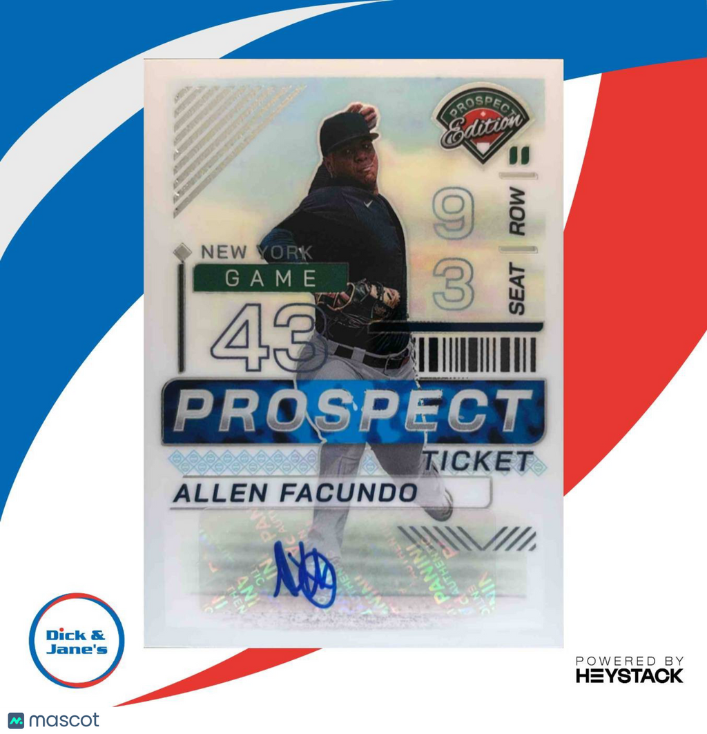 2024 Panini Prospect Edition Allen Facundo Holo Ticket Signatures #2 Yankees Listed With Mascot.