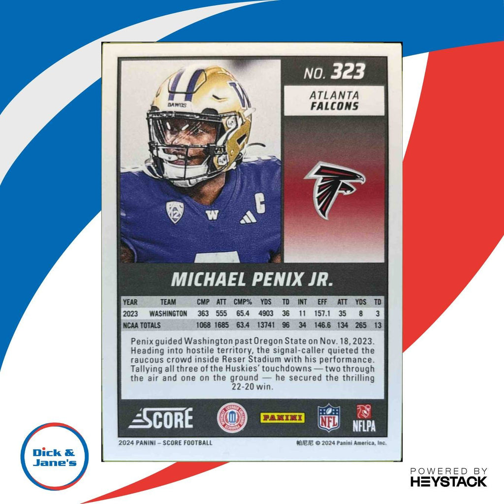 2024 Panini Score Michael Penix Jr. Ellipse 156/299 #323 RC Atlanta Falcons Listed With Mascot.