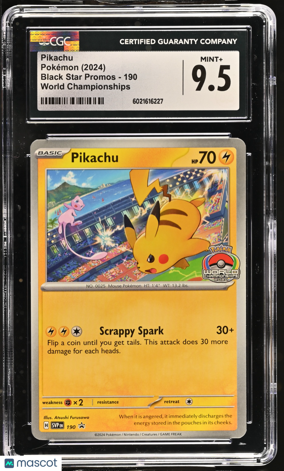 You are purchasing a 2024 Pokémon Black Star Promos Pikachu #190 CGC 9.5. You will receive the exact item in the photographs. Thank you for looking. Listed With Mascot.