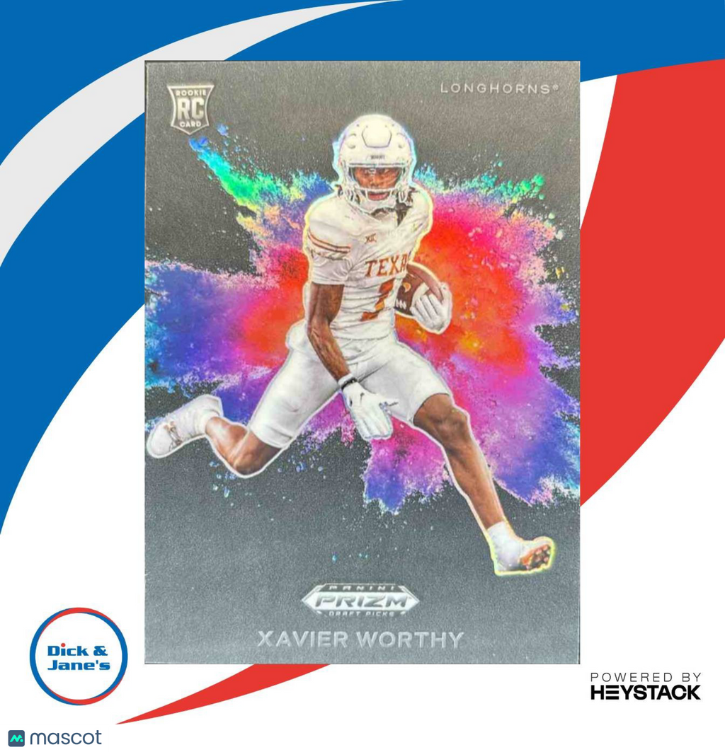 2024 Prizm Collegiate Draft Picks Xavier Worthy Color Blast RC Texas Longhorns Listed With Mascot.