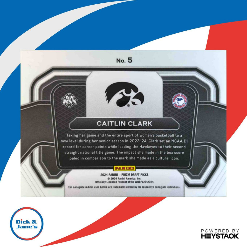 2024 Prizm Draft Picks Collegiate Caitlin Clark Campus Legends #5 RC Hawkeyes Listed With Mascot.