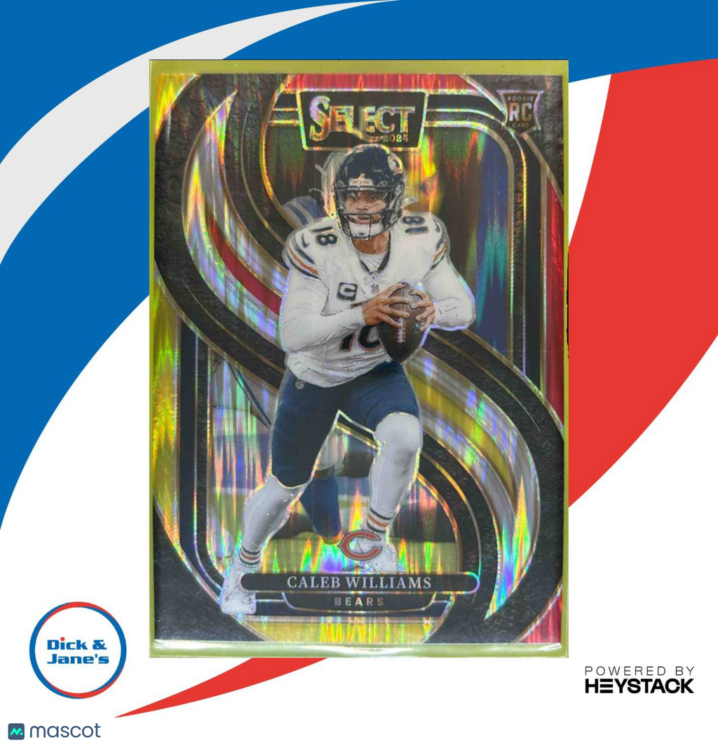 2024 Select Caleb Williams Premier Red and Yellow Prizm Listed With Mascot.
