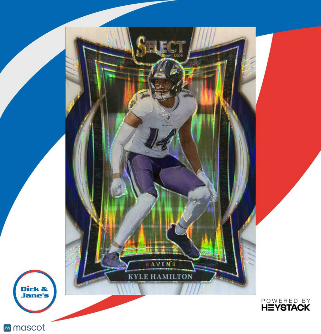 2024 Select Kyle Hamilton Concourse White Prizm Shock 142/199 Baltimore Ravens Listed With Mascot.