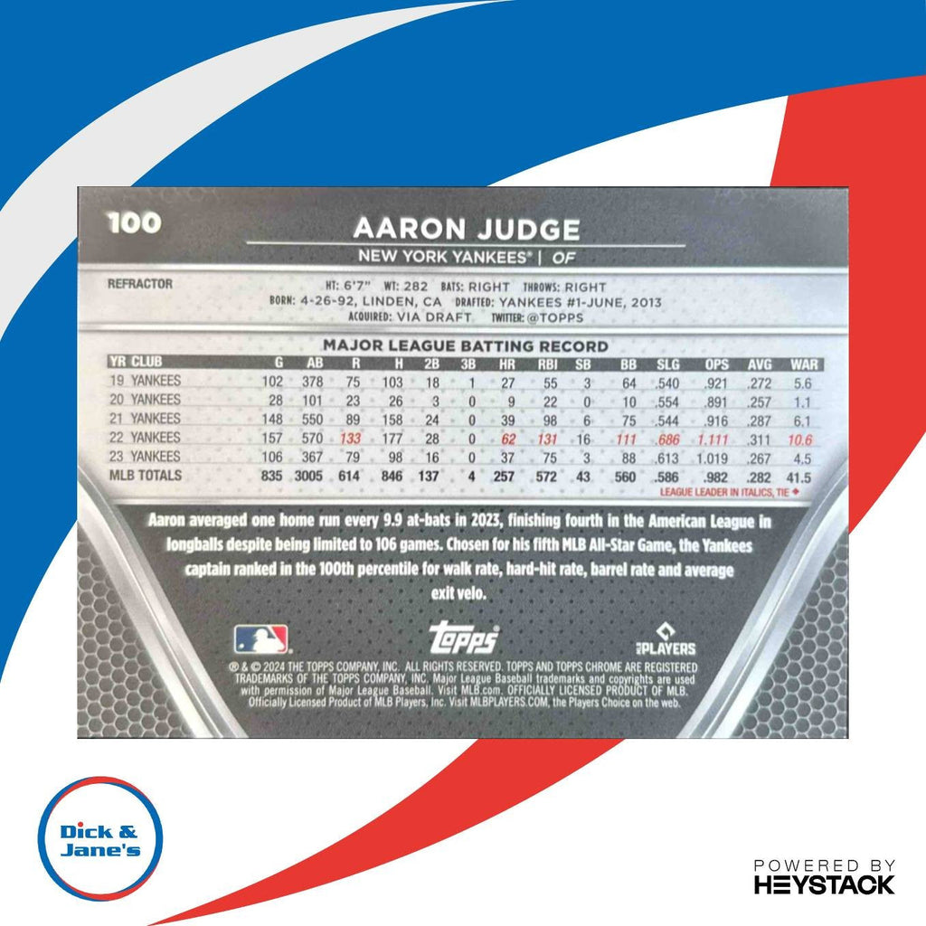 2024 Topps Chrome Black Aaron Judge Refractor 61/199 #100 New York Yankees