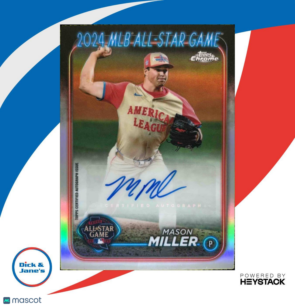 2024 Topps Chrome Update Mason Miller All-Star Game Auto Oakland Athletics Listed With Mascot.