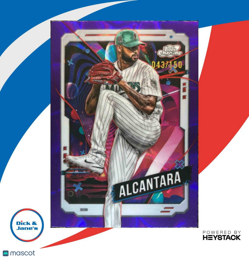 2024 Topps Cosmic Chrome Sandy Alcantara Purple Nebula /150 #134 Marlins Listed With Mascot.