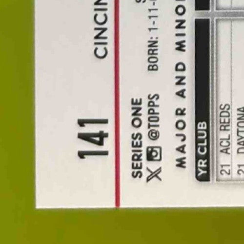 2024 Topps Elly De La Cruz #141 RC Cincinnati Reds Listed With Mascot.
