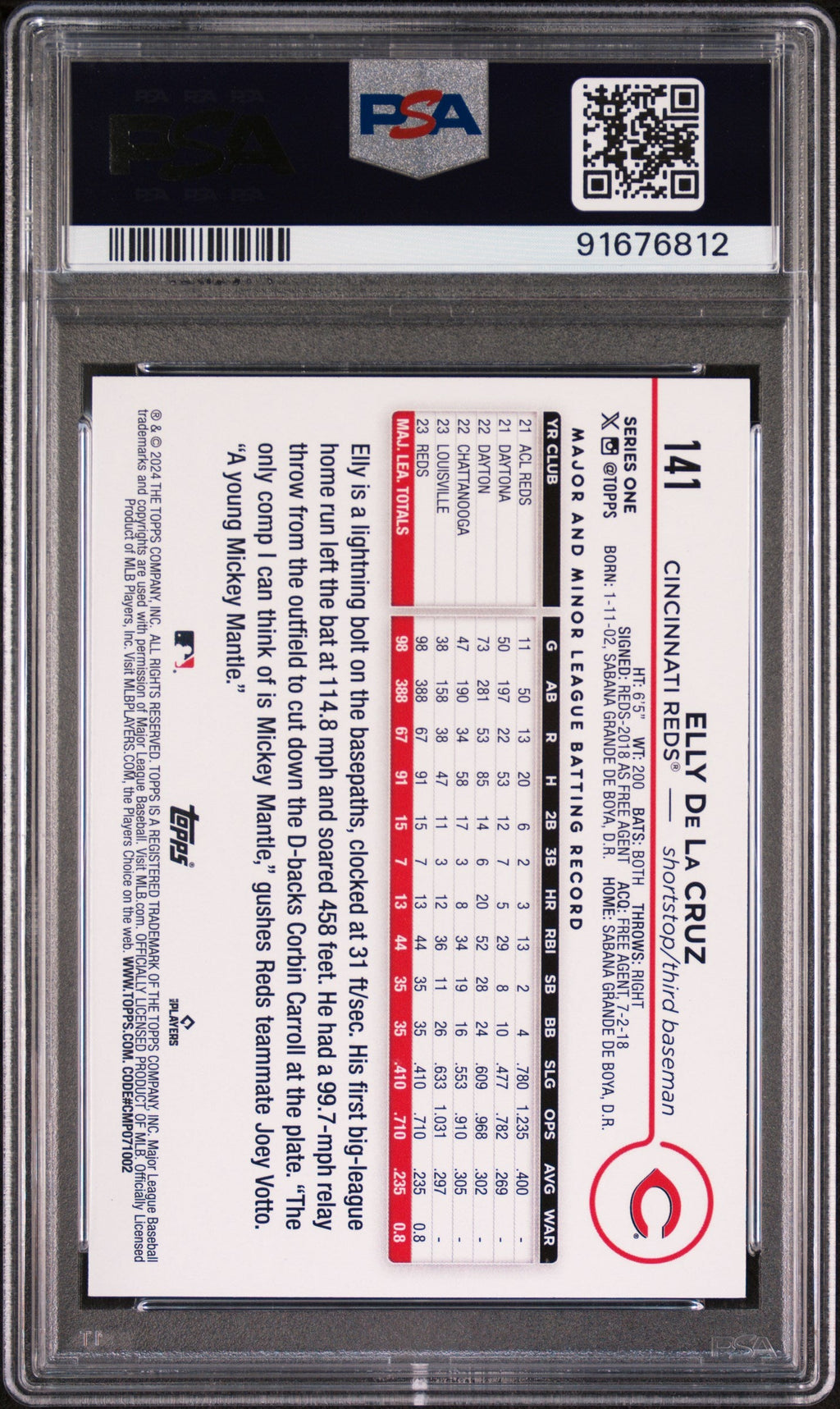 You are purchasing the following: 2024 Topps Elly De La Cruz Rookie #141 PSA 10 Cincinnati Reds. You will receive the exact item in the photographs. Note: Please do not connact us and asking the following: 1. What is the lowest you would take? Just make an offer. If the offer is automatically declined, you have your answer. 2. What the best you can do? See above. Not repling to an email is a reply. 3. Any room on this? See above. Not repling to an offer is a reply. 4. We ONLY do one counter offer, so please make your best offer the first time! Note: If the price off, in your option, please send your resaoning and an offer. We will review it. Note: We manage nearly 10 millon cards regularly and will adjust prices as errors are noticed or pointed out! Listed With Mascot.