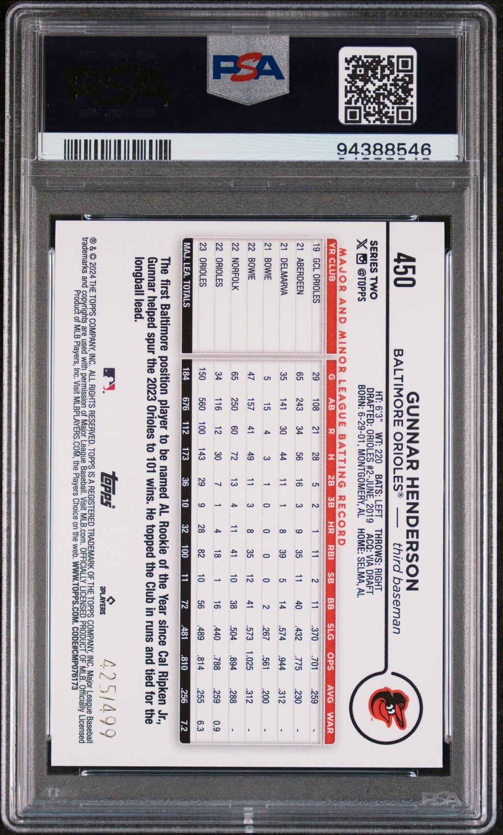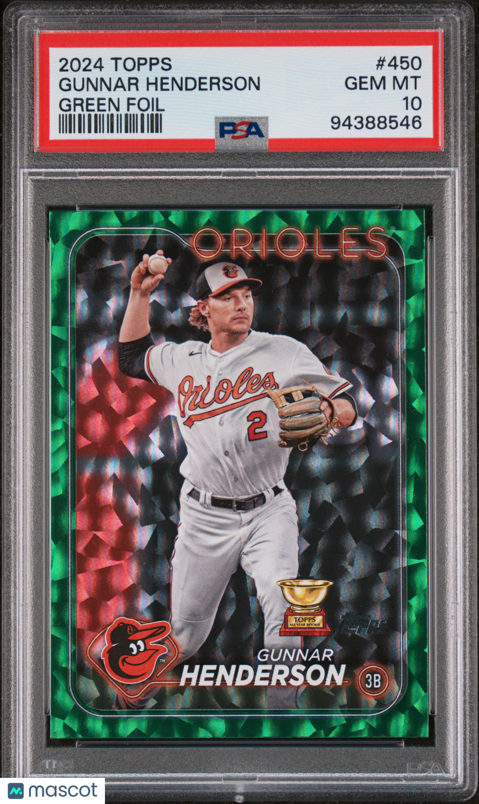 You are purchasing the following: 2024 Topps Gunnar Henderson Green Crackle Foil Board /499 #450 PSA 10 . You will receive the exact item in the photographs. Note: Please do not connact us and asking the following: 1. What is the lowest you would take? Just make an offer. If the offer is automatically declined, you have your answer. 2. What the best you can do? See above. Not repling to an email is a reply. 3. Any room on this? See above. Not repling to an offer is a reply. 4. We ONLY do one counter offer, so please make your best offer the first time! Note: If the price off, in your option, please send your resaoning and an offer. We will review it. Note: We manage nearly 10 millon cards regularly and will adjust prices as errors are noticed or pointed out! Listed With Mascot.