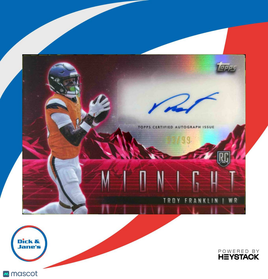 2024 Topps Midnight Troy Franklin Rookie Horizon Signatures Twilight 93/99 Auto Listed With Mascot.