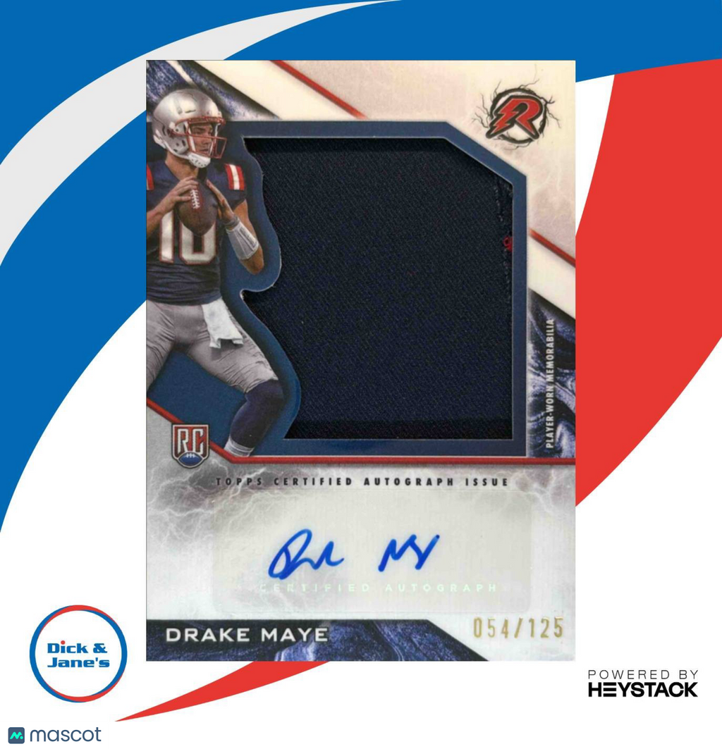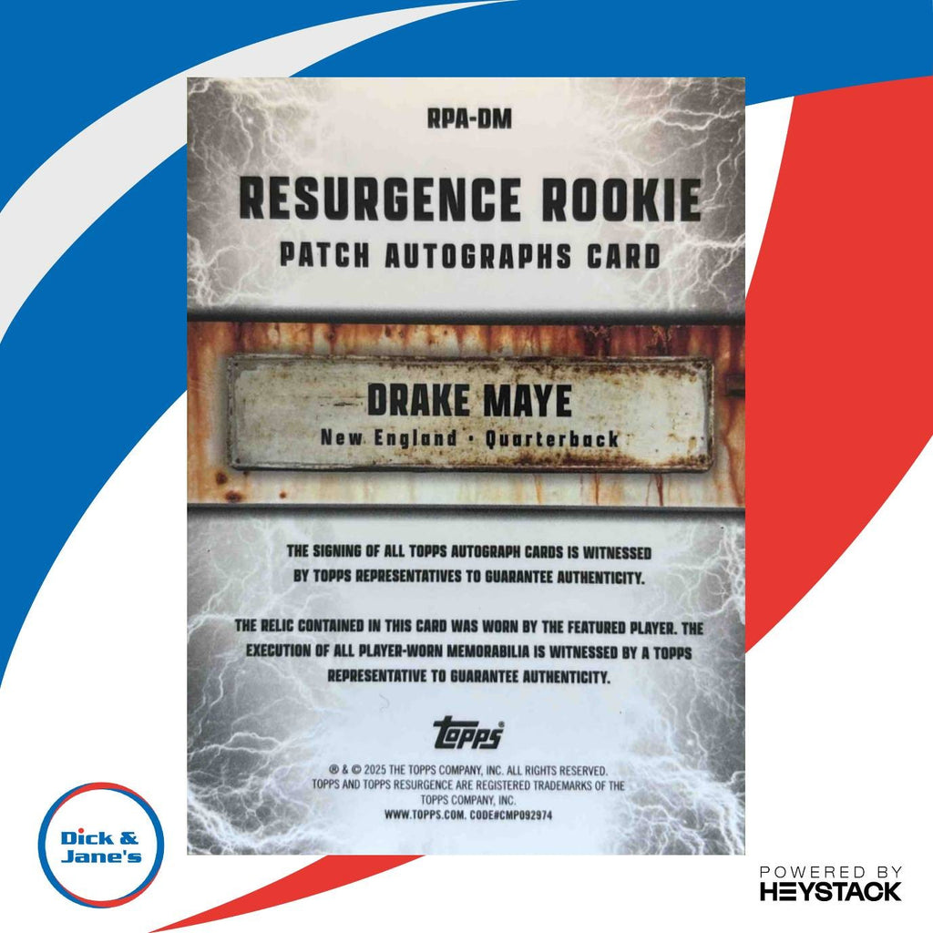 2024 Topps Resurgence Drake Maye Rookie Patch Auto White Surge 54/125 Patriots Listed With Mascot.